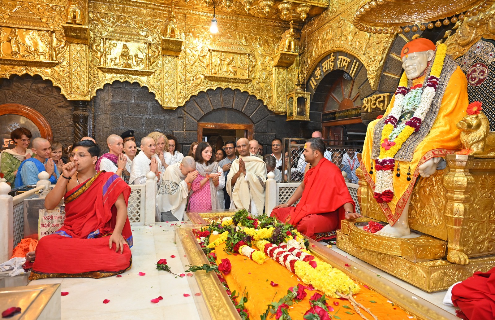 श्री साईबाबा समाधि मंदिर में विदेशी भक्तों की भारी उपस्थिति; 42 श्रद्धालुओं ने की मध्यान्ह आरती