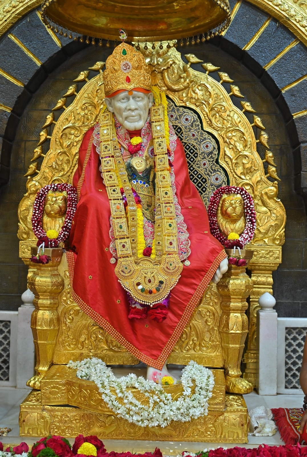 श्री साईबाबांवर देश विदेशातील लाखो भक्तांची श्रद्धा आहे. याच श्रद्धेपोटी भाविक श्री साईबाबांच्या झोळीत भरभरून दान देत असतात. आज श्री साईबाबा पुण्यतिथी उत्सवाच्या सांगता दिनी आंध्रप्रदेश योथिल एका श्री साईभक्ताने श्री साईचरणी ९५४ ग्रॅम वजनाचा आकर्षक नक्षीकाम व नवरत्नांचे खडे असलेला सोन्याचा हार श्री साईबाबांच्या चरणी अर्पण करुन श्री साईबाबा संस्थानचे मुख्य कार्यकारी अधिकारी गोरक्ष गाडीलकर यांच्याकडे सुपुर्द केला. याची किंमत ०१ कोटी ०२ लाख ७४ हजार ५८० रुपये असून हा सुंदर नक्षिकाम असलेला हार श्री साईबाबांच्या चरणी अर्पण केल्यानंतर श्री साईबाबा संस्थानच्या वतीने संस्थानचे मुख्य कार्यकारी अधिकारी गोरक्ष गाडीलकर यांनी देणगीदार श्री साईभक्त यांचा सत्कार केला. श्री साईभक्त यांच्या विनंतीवरून त्यांचे नाव गुप्त ठेवण्यात आले आहे.