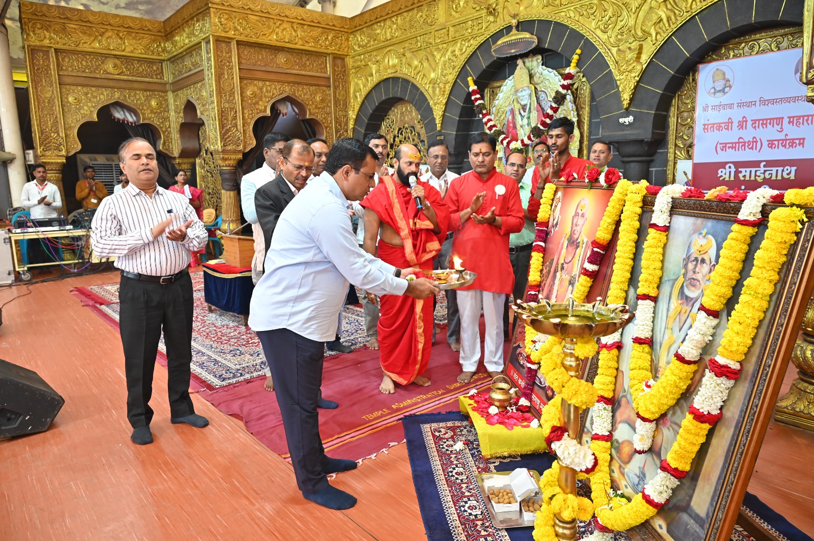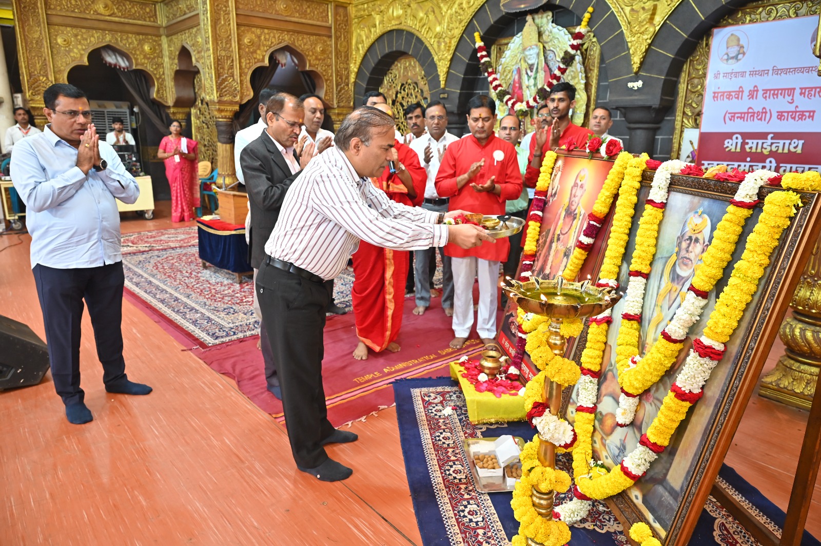 The program commenced with a ritual worship (Puja) of the portraits of Shri Saibaba and Saint Poet Dasganu Maharaj, performed by the Chief Executive Officer, Mr. Goraksha Gadilkar.