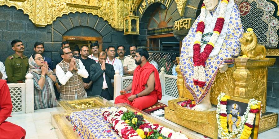 Shirdi: The Honorable Union Minister for Agriculture and Farmers' Welfare and Rural Development, Shri Shivraj Singh Chouhan, visited Shirdi today along with his family to offer prayers at the Shri Saibaba Samadhi Temple.