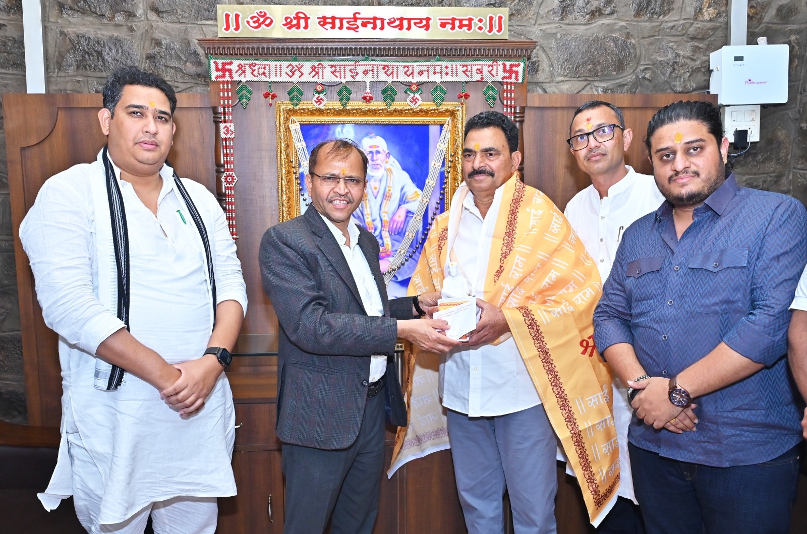 Renowned Indian film actor Sayaji Shinde offered prayers at the Samadhi of Shri Saibaba. On this occasion, former Chairman of the Shri Saibaba Sansthan and MLA Ashutosh Kale was present. Following the darshan, Sayaji Shinde was felicitated on behalf of the Shri Saibaba Sansthan by Chief Executive Officer Goraksh Gadilkar.