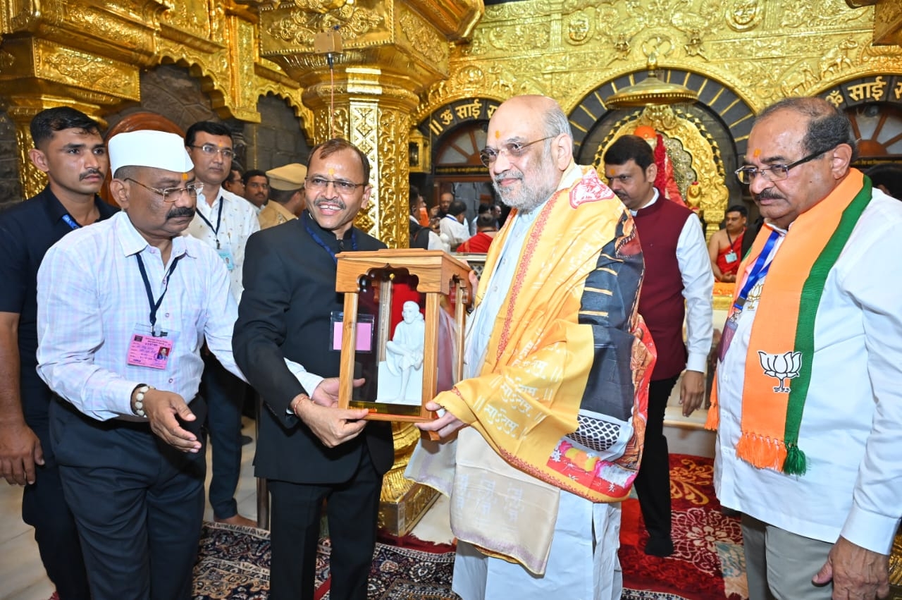 मा. ना. श्री अमित शहा, केंद्रीय गृह आणि सहकार मंत्री, भारत सरकार यांनी श्री साईबाबा समाधीचे दर्शन घेतल्यानंतर श्री साईबाबा संस्थानच्या वतीने संस्थानचे मुख्य कार्यकारी अधिकारी गोरक्ष गाडीलकर यांनी त्यांचा सत्कार केला. यावेळी मुख्यमंत्री मा. ना. देवेंद्र फडणवीस, उप मुख्यमंत्री मा. ना. एकनाथ शिंदे, उप मुख्यमंत्री मा. ना. अजित पवार, सहकार आणि नागरी विमान वाहतूक राज्यमंत्री मा. ना. मुरलीधर मोहोळ, जलसंपदा मंत्री मा. ना. राधाकृष्ण विखे पाटील, व इतर मंत्री महोदय उपस्थित होते.