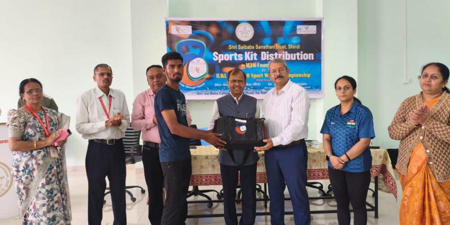 शिर्डी : श्री साईबाबा संस्थानच्या शैक्षणिक संकुलातील युवा खेळाडूंना एम३एम फाउंडेशन, नवी दिल्ली यांच्या वतीने आगामी IUKL केटलबेल स्पोर्ट युवा विश्वचषक स्पर्धेच्या पार्श्वभूमीवर क्रीडा साहित्याचे वितरण करण्यात आले. हा कार्यक्रम केटलबेल स्पोर्ट इंडिया असोसिएशन (KSIA) यांच्या मार्गदर्शनाखाली आयोजित करण्यात आला.