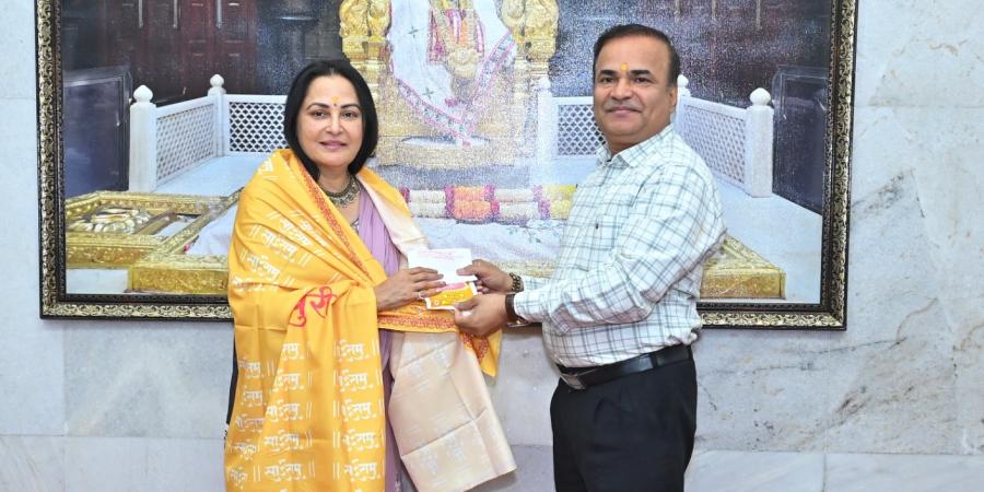 News: Former Rajya Sabha Member of Parliament and film actress Jaya Prada attended the afternoon (Madhyan) aarti of Shri Sai Baba and took darshan of Shri Sai Baba's Samadhi. After the darshan, she was felicitated by the Deputy Chief Executive Officer, Shri Bhimraj Darade, on behalf of the Shri Sai Baba Sansthan.