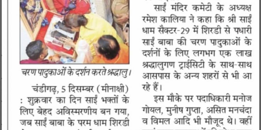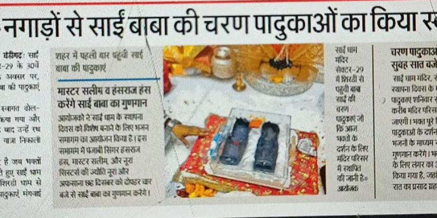 Darshan in Major Cities Between December 01, 2025, and December 14, 2025, Shree Sai Baba's Holy Padukas (sandals) are being taken for public viewing to major North Indian cities, including Delhi, Chandigarh, Jalandhar, and Lucknow.