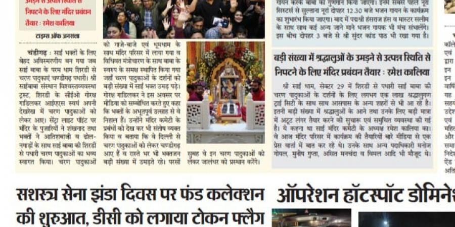 श्री साईबाबांच्या पादुका दर्शन सोहळ्याला विदर्भ दौऱ्यात ऐतिहासिक प्रतिसादानंतर, सध्या उत्तर भारतातील दौऱ्यातही भाविकांकडून अत्यंत उत्साहपूर्ण प्रतिसाद मिळत आहे.
