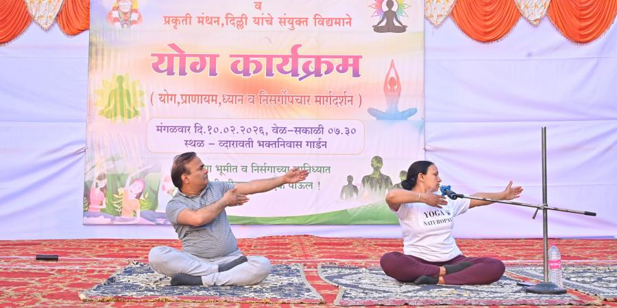Shirdi | Feb 10 The "Yoga Mahotsav – Prakriti Manthan" was successfully organized at the Dwaravati Bhaktaniwas Garden, jointly hosted by the Shri Saibaba Sansthan Trust, Shirdi, and Prakriti Manthan, Delhi. Held under the divine grace of Shri Saibaba amidst serene natural surroundings, the festival received an overwhelming response from yoga practitioners, Sai devotees, and local residents.