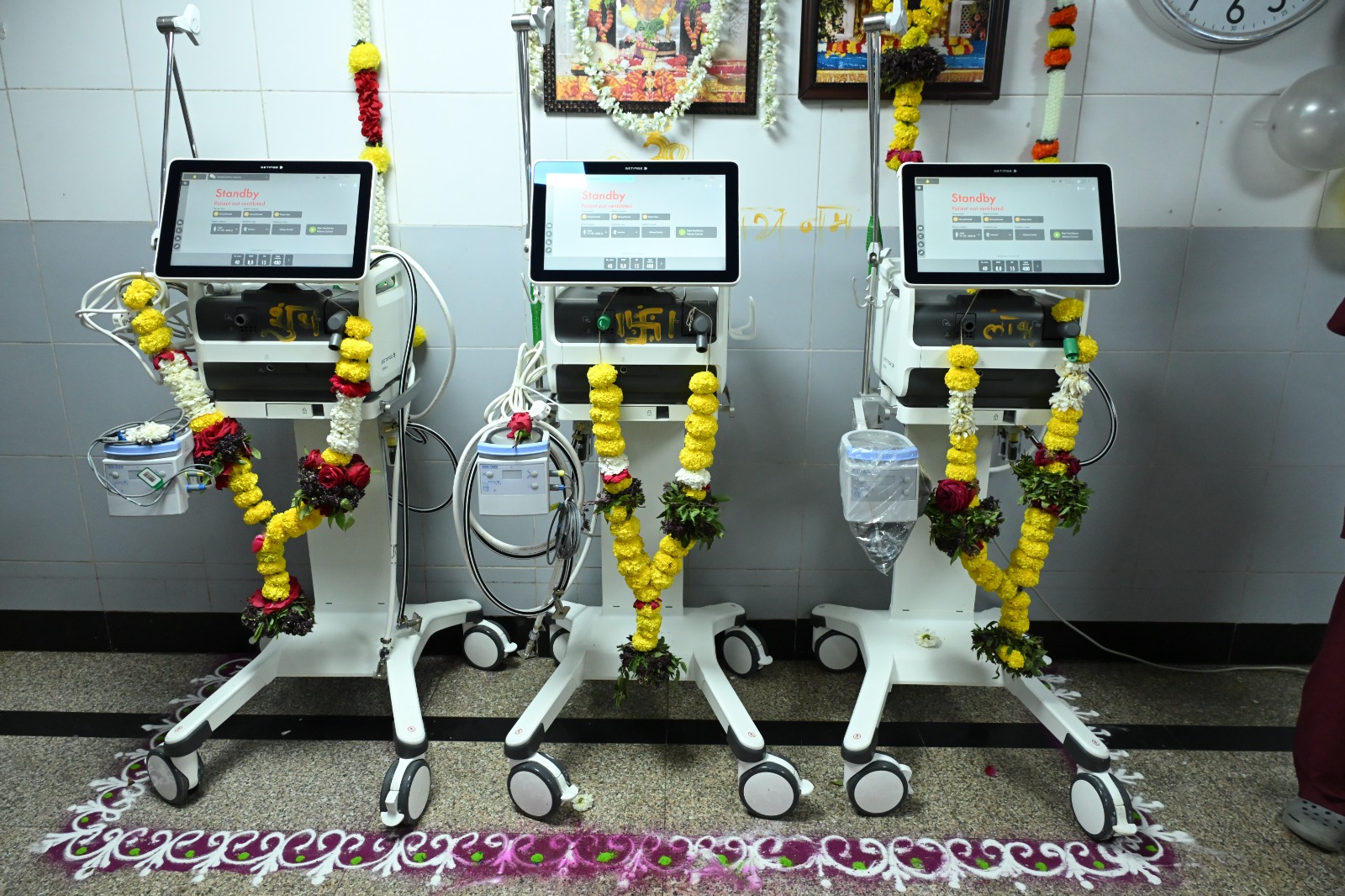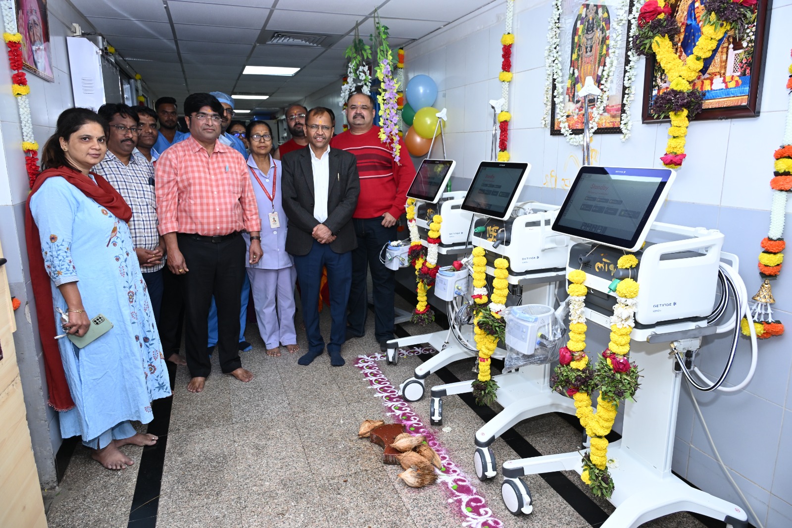 The Shirdi branch of State Bank of India has donated three ventilators worth ₹52.50 lakh to Shri Saibaba Super Hospital. The machines were formally inaugurated with a traditional pooja by Shri Gorakh Gadilkar (IAS), Chief Executive Officer of Shri Saibaba Sansthan Trust.