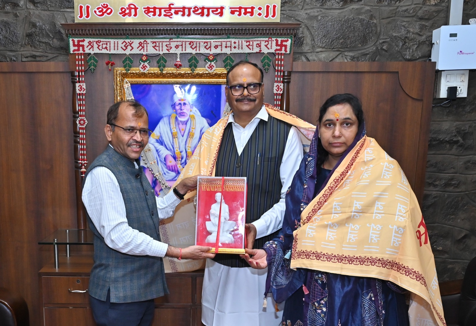 Hon’ble Shri Brajesh Pathak, Deputy Chief Minister of Uttar Pradesh, along with his family, attended the Dhoop Aarti and had darshan (holy visit) at Shree Saibaba’s Samadhi Temple. After the darshan, he was felicitated on behalf of the Shree Saibaba Sansthan by the Hon’ble Chief Executive Officer, Goraksh Gadilkar (I.A.S.). On this occasion, Temple Department Head Vishnu Thorat, Public Relations Officer Deepak Lokhande, and others were also present.