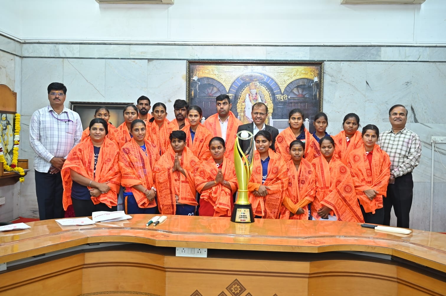 After clinching a historic victory in the T20 World Cup, the Indian Women’s Blind Cricket Team visited Shirdi today to seek the blessings of Shri Sai Baba. Following the prayers, the winners were felicitated by Goraksha Gadilkar, the Chief Executive Officer of the Shri Sai Baba Sansthan Trust. The team was honored for their remarkable achievement on the global stage, marking a proud moment for the entire nation.