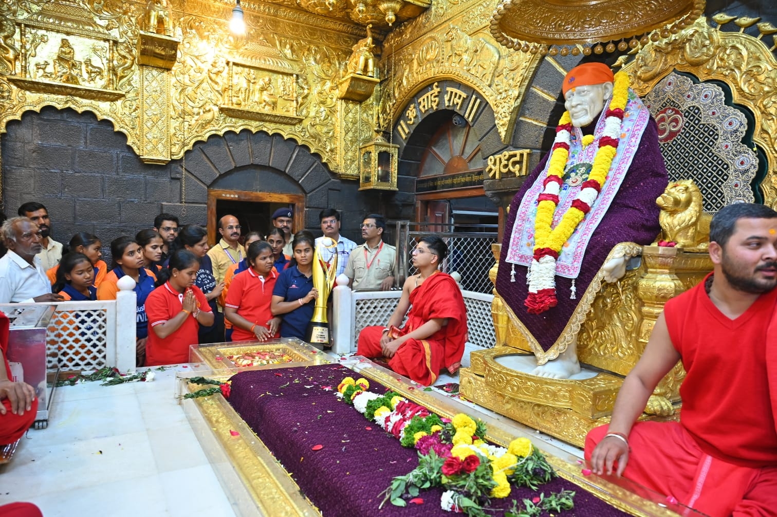 दर्शनानंतर श्री साईबाबा संस्थानच्यावतीने मुख्य कार्यकारी अधिकारी गोरक्ष गाडिलकर यांच्या हस्ते विजेत्या खेळाडूंचा सत्कार करण्यात आला