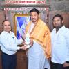 After the darshan, he was felicitated by the temple head, Mr. Vishnu Thorat.