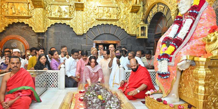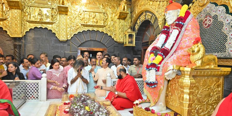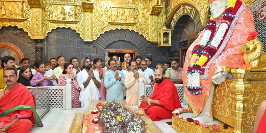 Renowned choreographer Remo D'Souza visited the shrine of Shri Sai Baba to offer his prayers. Following the darshan, he was felicitated by Vishnu Thorat, the head of the Temple Department, on behalf of the Shri Sai Baba Sansthan.