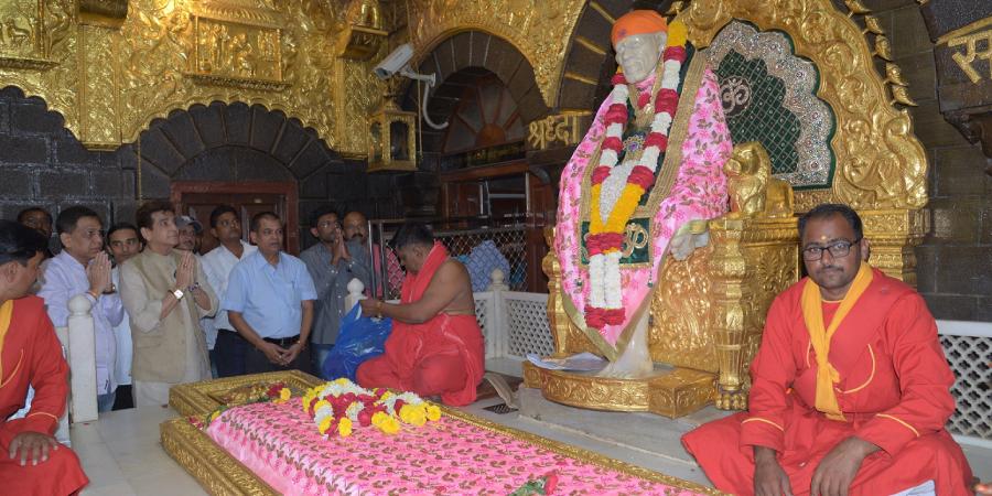 श्री.ए.के.डोंगरे, (भा.प्र.से.) यांनी श्री साईबाबाच्या समाधीचे दर्शन घेवुन संस्थानचा मुख्य