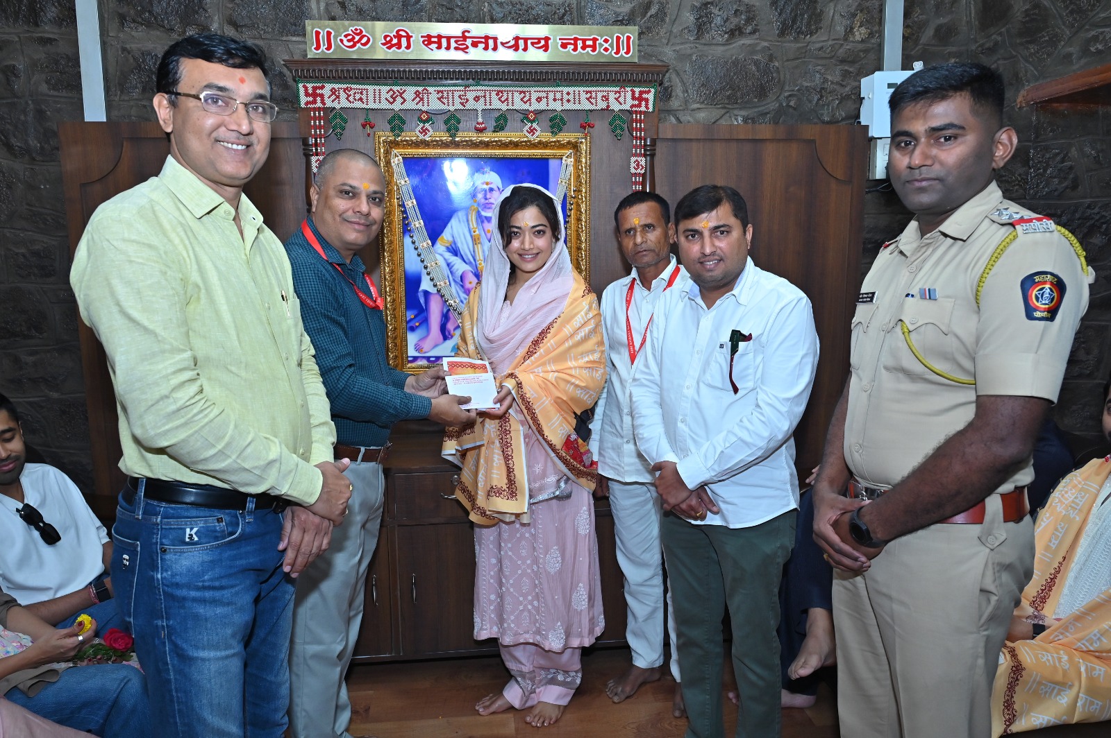 प्रसिध्द अभिनेत्री रश्मिका मंदन्ना व अभिनेता आयुष्मान खुराणा यांनी श्री साईबाबांच्या समाधीचे दर्शन घेतले. दर्शनानंतर श्री साईबाबा संस्थानच्या वतीने जनसंपर्क अधिकारी दिपक लोखंडे व मंदिर पर्यवेक्षक म्हाळू सोनवणे यांनी त्यांचा सत्कार केला. यावेळी संरक्षण अधिकारी महेश येसेकर उपस्थित होते.