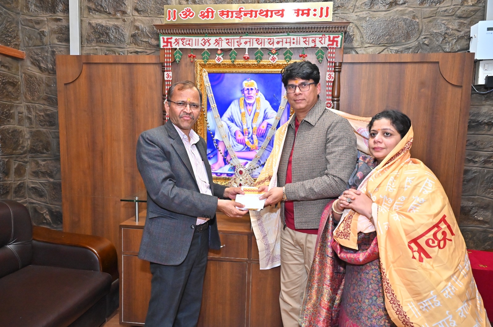 On this occasion, on behalf of the Shri Saibaba Sansthan, Chief Executive Officer Mr. Goraksh Gadilkar felicitated the generous Sai devotees Mr. Pradeep Mohanty and Mrs. Pratima Mohanty and expressed his gratitude to them.